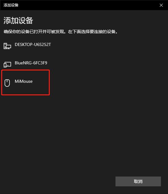 电脑蓝牙配对列表中出现“MiMouse”,选中并配对,电脑提示连接成功后即可正常使用。