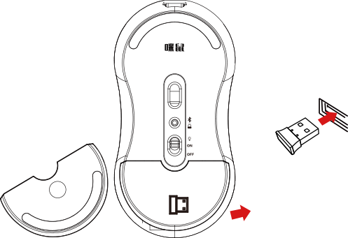 打开“接收器收纳仓”,取出接收器,将接收器插入电脑USB接口。